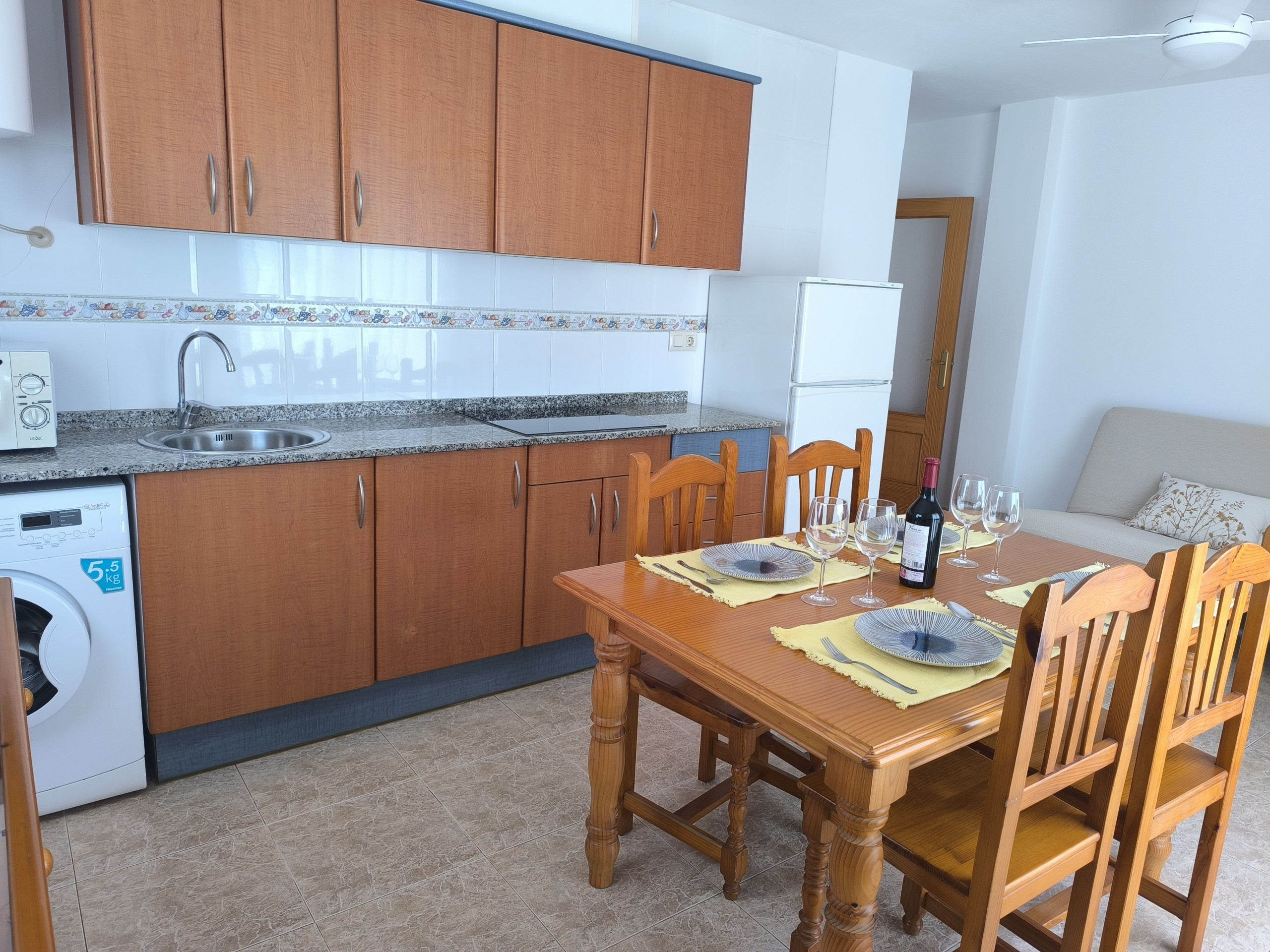 - Cocina abierta al salón totalmente equipada. No tiene horno.