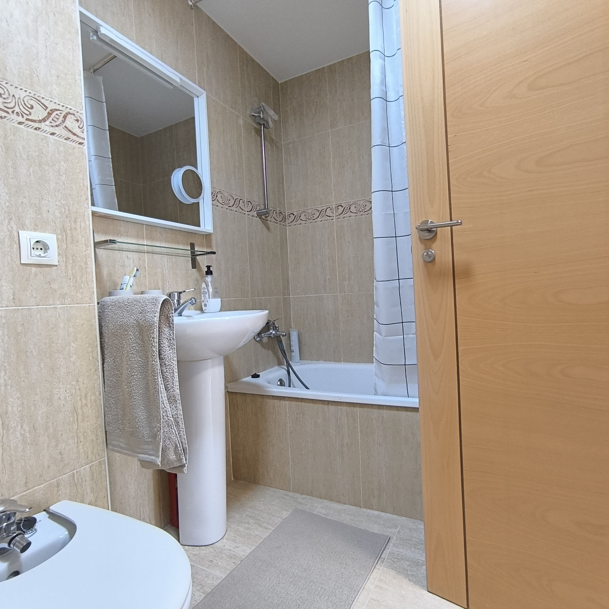 Entre sus comodidades destacan conexión WiFi, televisión, plancha, y un balcón donde podrás disfrutar de momentos tranquilos. Cuenta con dos baños, uno con ducha y otro con bañera, lo que facilita la convivencia durante las vacaciones.