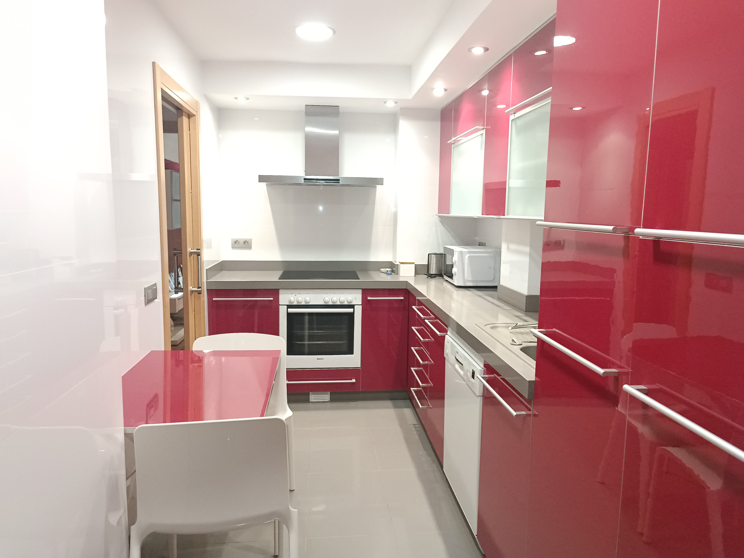 La cuisine indépendante, à vitrocéramique, est équipée avec réfrigérateur, micro-ondes, four, congélateur, lave-vaisselle, vaisselle/couverts, ustensiles/cuisine et cafetière.
