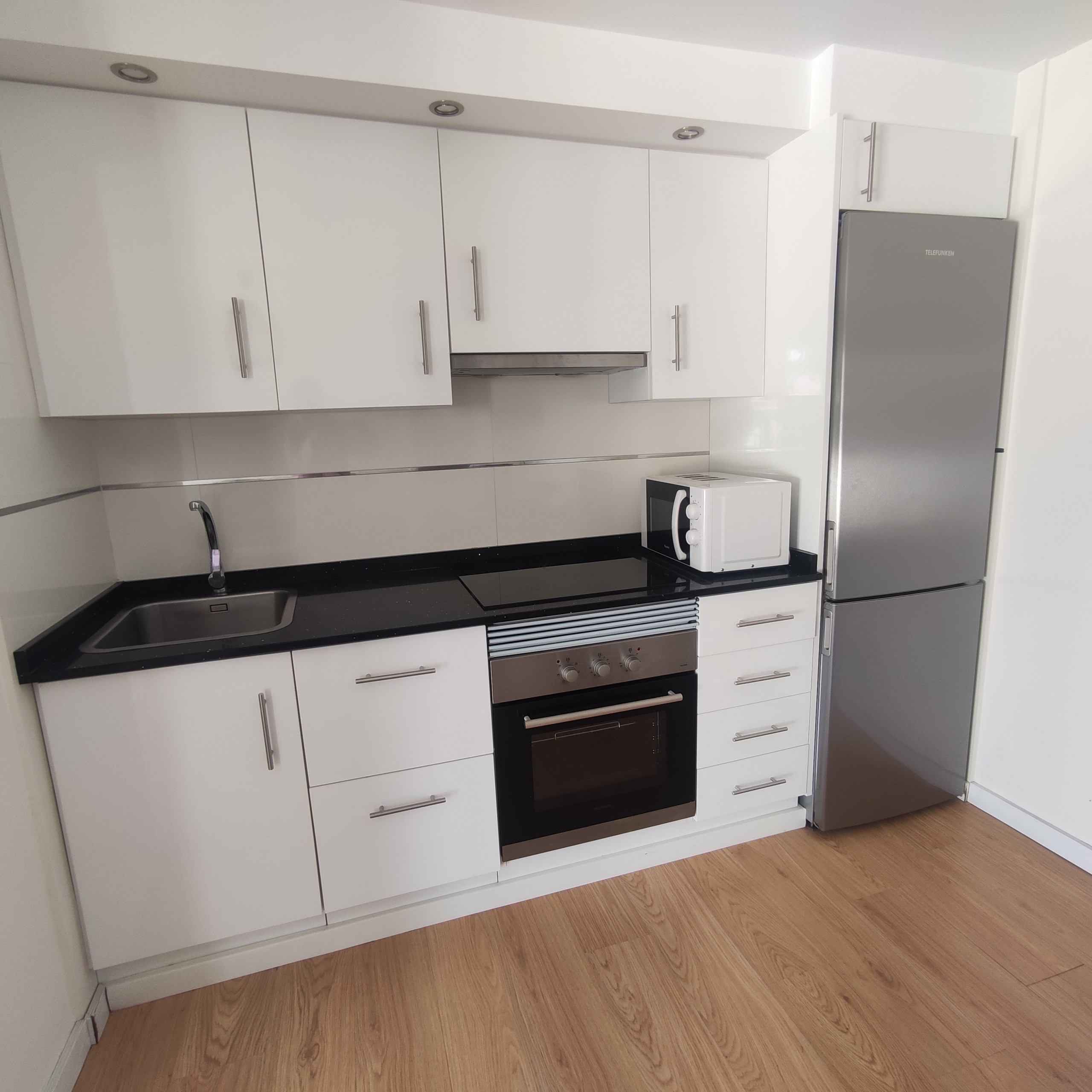 La cuisine américaine, à vitrocéramique, est équipée avec réfrigérateur, micro-ondes, four, congélateur, vaisselle/couverts, ustensiles/cuisine et cafetière.